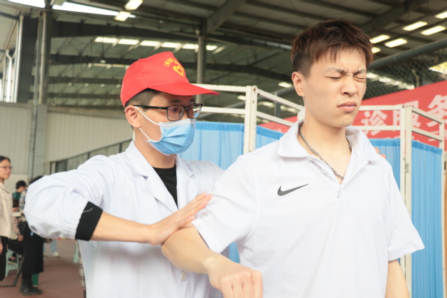 中医科、消化内科、妇科、康复科、全科医学科等5个科室11名专家现场坐诊,为师生提供优质诊疗服务。把脉搏、量血压、问病史,中医科根据问诊师生体质开具中医药方调理身体;消化内科、妇科、医学全科专家根据师生体检报告,就师生关心的健康问题进行细致解答,帮助师生及时掌握自己的健康情况,做到疾病早发现、早预防、早治疗;不少有颈椎问题、腰椎困恼的师生也在康复科区域排起了长队,医生们对师生进行触诊后,进行针灸、推拿,开具运动处方,缓解病痛的同时,指导师生开展常态化运动修复,帮助师生塑造健康体魄,以更好的状态投入学习和工作。