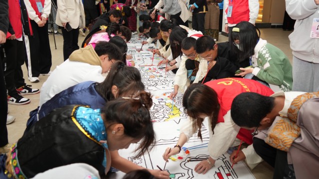 在南区学生活动中心,“花开石榴红,情暖明院蓝”活动安排了古琴社、书法社、剪纸展演和现场绘画等项目,列东中学的藏娃们在大哥哥大姐姐的带领下纷纷加入体验活动,各族学生用手中的画笔亲手描绘民族团结的石榴籽画卷,表达了“中华民族一家亲、同心共筑中国梦”的赤诚真情,活动现场热闹非凡,体验活动让西藏班的同学流连忘返,通过活动,两校青年学子间实现了广泛交往、全面交流、深度交融,有力推进两校民族团结进步工作迈上新的台阶。