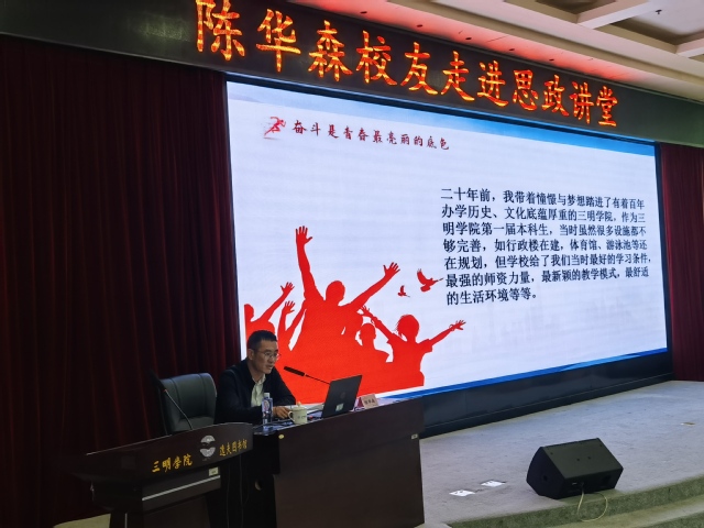 陈华森校友身上所展现出的责任担当、奉献品质及人生智慧,让现场的师生们深受鼓舞、倍感振奋。“陈华森校友在工作岗位上充分发挥了党员的先锋模范作用,为广大师生树立了学习的榜样。理想指引人生方向,信念决定事业成败。习近平总书记强调,‘立德树人’是中国特色社会主义教育事业的根本任务。马克思主义学院坚持以马克思主义为指导,把培育和践行社会主义核心价值观融入思想政治教育课程体系,做坚定信仰者、积极传播者和模范践行者。”马克思主义学院专任教师余佳樱老师如是说。21级化学师范班林同学表示,这是一堂特殊的思政课,有幸聆听华森学长的故事,从中感悟榜样精神,汲取前行力量。作为青年学子,我们生逢其时,重任在肩,不仅要坚定自己的初心和理想,更要勇敢进取,用奋斗书写青春与人生,以青春之力为国家的建设发展添砖加瓦。