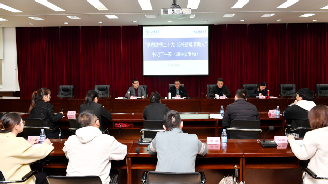 3月29日下午,yl6809永利官网“学思践悟二十大 培根铸魂育新人”书记下午茶(辅导员专场)座谈会在行政八楼会议室举行。校党委书记赖锦隆出席活动。