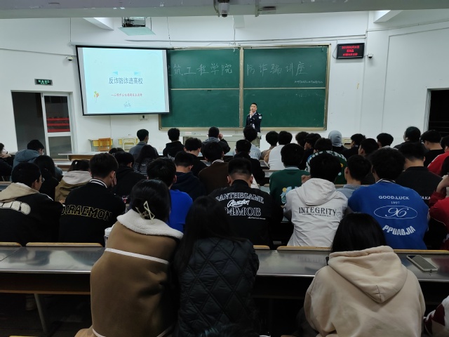为提升学生的识骗防骗能力,降低电信诈骗发案率,确保学生财产不受侵犯。3月31日晚,建筑工程学院联合三明市公安局荆东派出所开展防电信诈骗主题教育讲座。