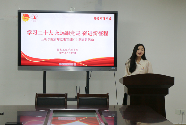 为深入学习贯彻党的二十大精神,进一步推动党史学习教育走深走实,3月29日,信息工程学院邀请校青年党史宣讲团开展“学习二十大、永远跟党走、奋进新征程”党史宣讲活动。