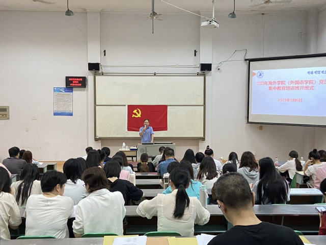 5月6日下午,海外学院(外国语学院)在外语楼B402召开学习贯彻习近平新时代中国特色社会主义思想主题教育党员集中培训班开班式。院处级领导干部、全体师生党员参加会议,会议由院党委书记蔡亚才主持。