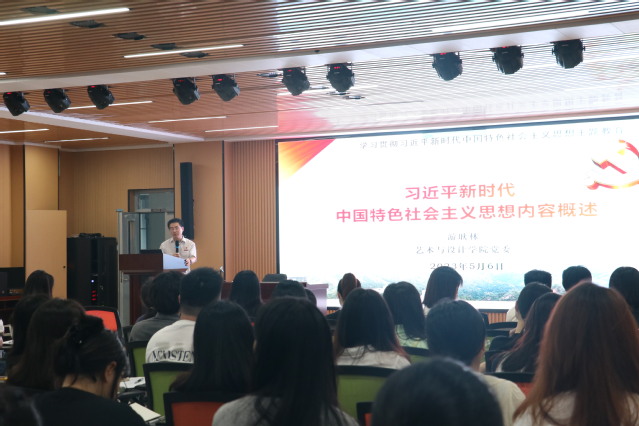 5月6日下午,艺术与设计学院在艺术楼345室举行学习贯彻习近平新时代中国特色社会主义思想主题教育读书班开班式暨专题党课。开班式采用线上线下相结合的方式进行,全体师生党员参加,学院党委副书记游耿林主持会议。