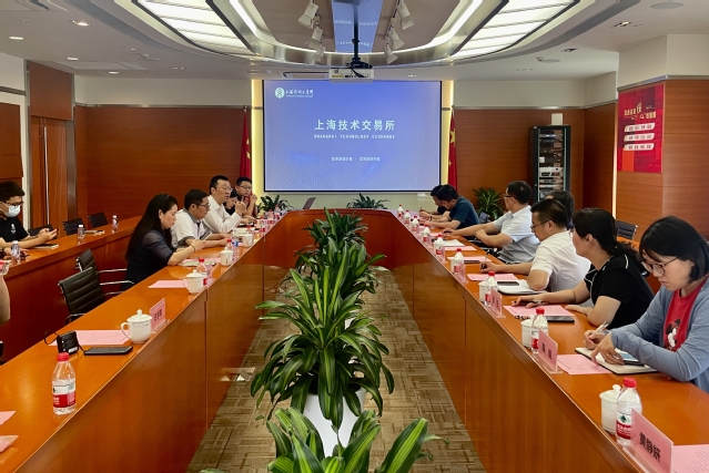 调研组一行还到上海技术交易所考察调研技术转移、成果转化、合作交流等工作,实地参观了交易大厅,听取上海技术交易所的基本现状、框架设置、运行模式等情况介绍,观看了部分交易成果展示,并与上海技术交易所进行了深入的座谈交流。