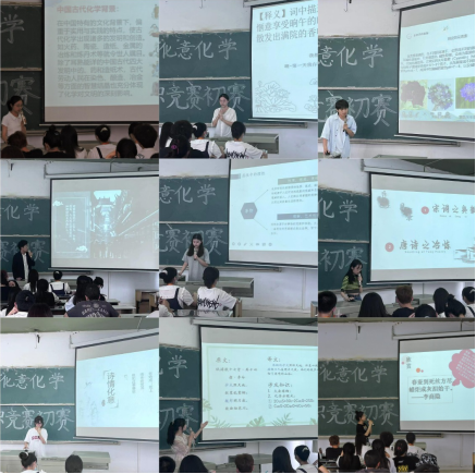 本次比赛设置初赛演讲和决赛答题两部分,初赛40名选手进行3分钟讲解,从天气、地理、饮食文化、生活习俗等多角度多维度切入,讲述中华传统文化中所蕴藏的化学知识点。40名选手文铺锦绣,字吐珠玑,使听众置身于不同的场景中,感受别样的化学魅力,展现了工科生扎实的学科知识和良好的语言表达能力。