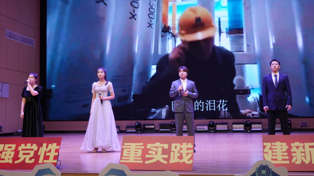 现场互动环节,学生自编自导自演的舞台剧《对话历史,一马当先》,以时空对话为主线,带领师生沉浸式回溯过往百年历史洪流;一首《党旗飘扬的方向》合唱拉近了与观众的距离,将决赛现场气氛推向高潮。