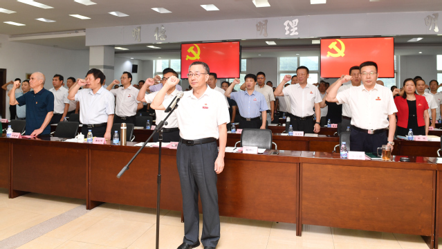 6月29日,“七一”来临之际,yl6809永利官网在行政楼八楼会议室举办了一场别开生面的主题活动,通过观看《初心之问》专题片、重温入党誓词、颁发“光荣在党50年”纪念章、开展读书分享等,带领党员干部循迹初心,启新未来,以实际行动向建党102周年献礼。