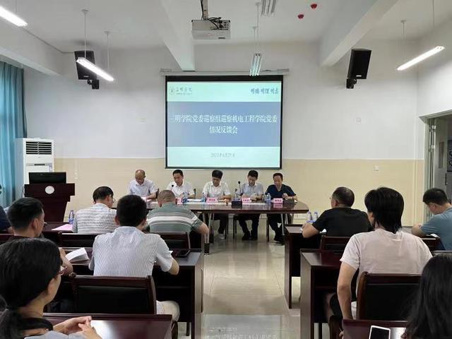 6月21日,校党委巡察组巡察机电工程学院党委情况反馈会在工科楼C603召开。校党委巡察工作领导小组副组长、纪委书记游龙桂,校党委组织部、巡察办负责人,校党委巡察组组长、副组长、联络员,机电工程学院党委领导班子成员及全体教职工参加会议。
