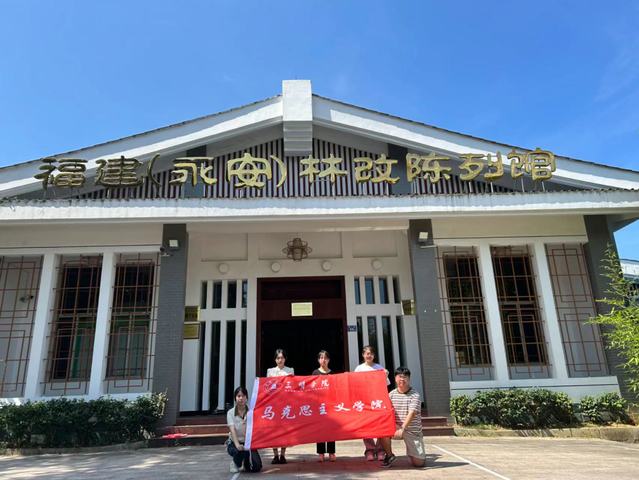 在洪田镇马洪村,红色文旅成为支柱产业。实践队一行走进中央红军标语博物馆,接受红色文化洗礼与爱国主义教育,在聆听红色故事和简洁凝练,气势磅礴的标语中置身于烽火年代,增强了民族自豪感。活动结束后,实践队在团旗前庄严宣誓“我志愿加入中国共产主义青年团……”,重温身为社会主义建设事业合格接班人的初心与使命。