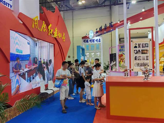 此次文博会我校充分结合地域特点,发挥学科特色与专业优势,以“风展红旗如画”形象作为主造型,结合学校IP-“明日明月”设计,分为艺术文创、鞋服设计、明日明月作品、书法作品、机器人表演、校友文化、视频播放led等几大展区,将传统文化与现代科技相结合,为观众带来了一场视觉与文化的盛宴,让他们更深入地了解和体验了福建地区的传统文化与现代创意。