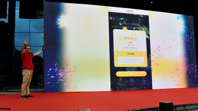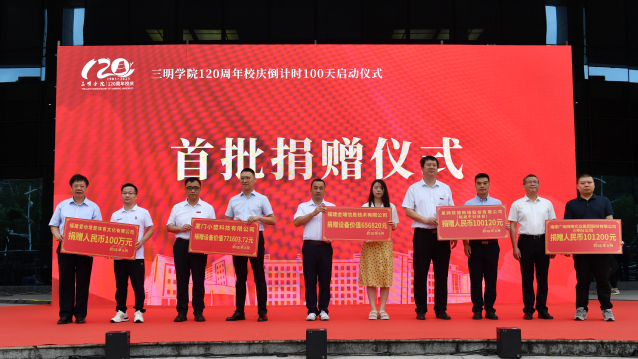在师生校友共同见证下,赖锦隆、王乾廷与校友、离退休教师、捐赠单位和师生代表共同启动倒计时装置。