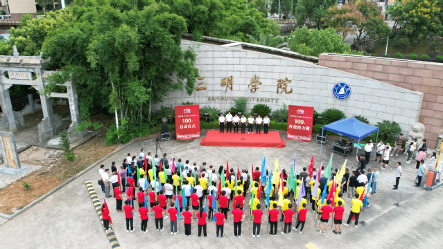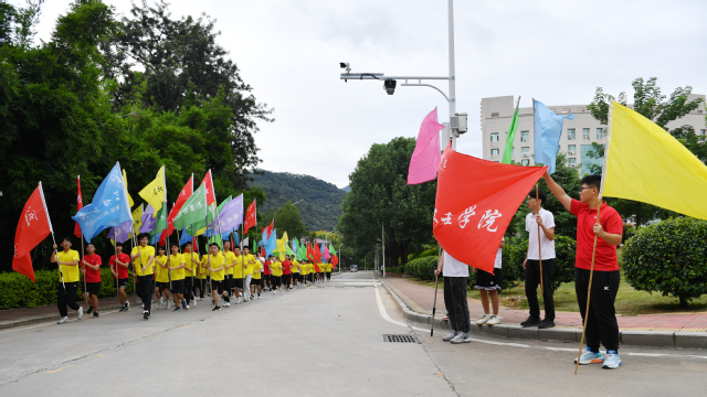 从校大门出发,沿师源大道,到图书馆主会场,师生接力护送校旗、闽师之源旗帜,陆续加入的各二级学院旗帜、各地校友分会旗帜,如万涓成河,凝聚磅礴力量。