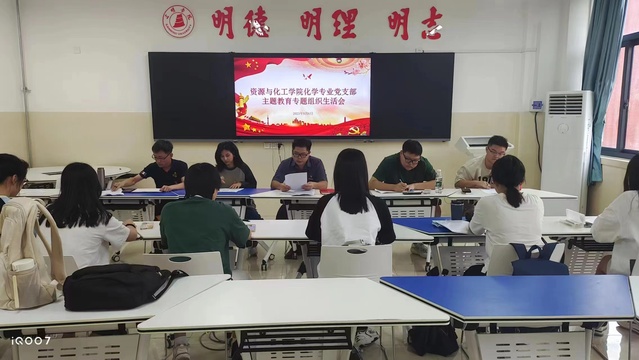 9月6日,资源与化工学院党委各基层党支部开展2023年度主题教育专题组织生活会。会议由各支部书记主持,各支部全体师生党员参加,学院处级党员领导干部以普通党员身份参加所在支部的专题组织生活会,院党委班子成员列席联系党支部的组织生活会并进行点评。