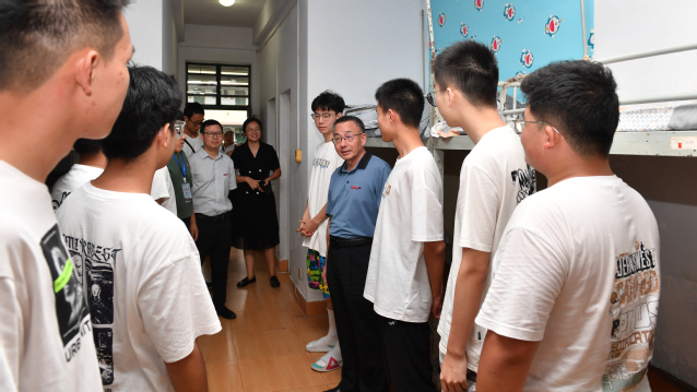 走进新生宿舍,校领导亲切询问新生们来校过程是否顺利、校园环境和餐饮是否满意、开课后是否跟得上,希望同学们早调整好状态,勤学习,善行动,勇创新,过好精彩大学生活;希望同学们快融入集体生活,相互体谅包容,团结互助友爱,在共同的起跑线上向上向善;希望同学们多去图书馆、多去运动场、多去实验室,明德明理明志,规划好、实现好未来目标。