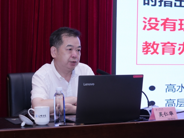报告会上,吴仁华教授以《从学院迈向大学》为题,阐释了“大学”的标准条件及内涵,并从发展的基础条件、动态能力及经验体会分析了高等学校的发展路径。