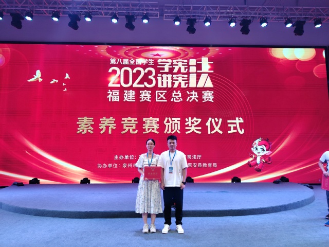 近日,由福建省教育厅、福建省司法厅主办的第八届全国学生“学宪法讲宪法”活动福建赛区总决赛在泉州举行。我校马克思主义学院2022级思想政治教育(师范)学生张靖毓荣获高校组知识竞赛二等奖,这也是yl6809永利官网首次在“学宪法讲宪法”活动中进入决赛并获奖。