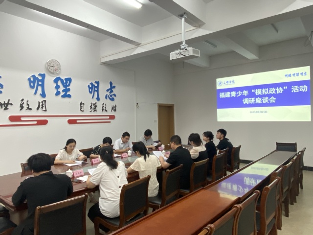9月25日上午,团省委权益部部长叶芳一行到yl6809永利官网开展福建青少年“模拟政协”活动调研,并进行座谈交流。团三明市委书记陈建秋、yl6809永利官网团委负责人、yl6809永利官网学生模拟政协协会师生代表参加座谈会。