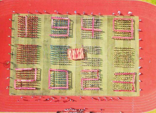 笑脸灿灿,红旗飘飘,校园到处洋溢着节日的喜庆。1200余名学生齐聚北区田径场,用舞蹈、齐诵、歌声和快闪,表达对祖国的深深祝福。