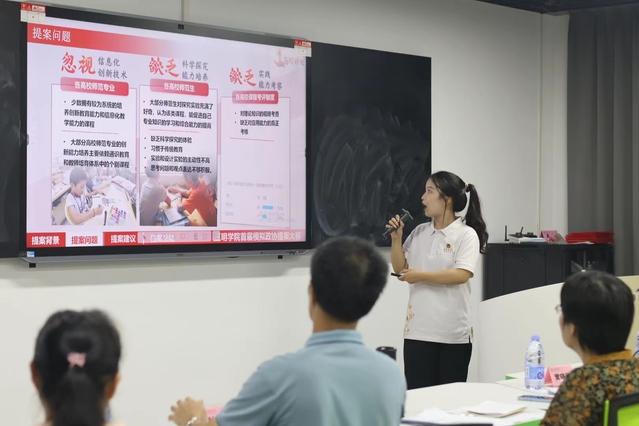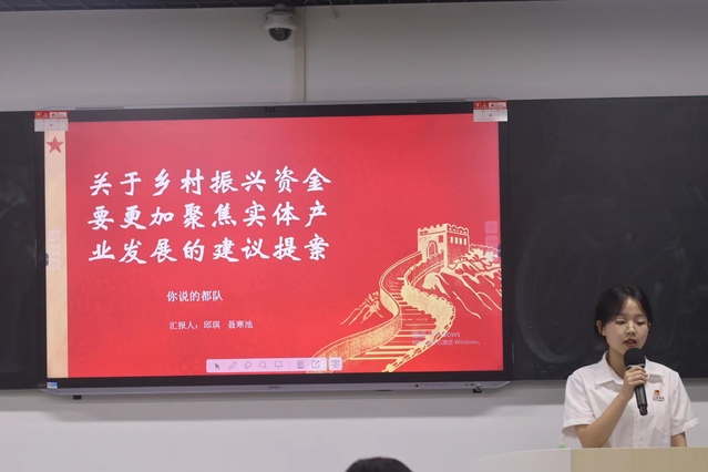 “我们团队通过实践调查发现,乡村要将资金投入农业规模生产、农产品加工贮运、农产品营运建设等方面,明确财政资金发展实体经济的比例,引导发展壮大新型农村集体经济……”本届提案大赛决赛共有12支提案队伍,主要围绕乡村振兴、大学生就业、智慧养老等主题,从发现问题、分析问题,实践调研、对策建议、提案可行性分析等方面展示提案。