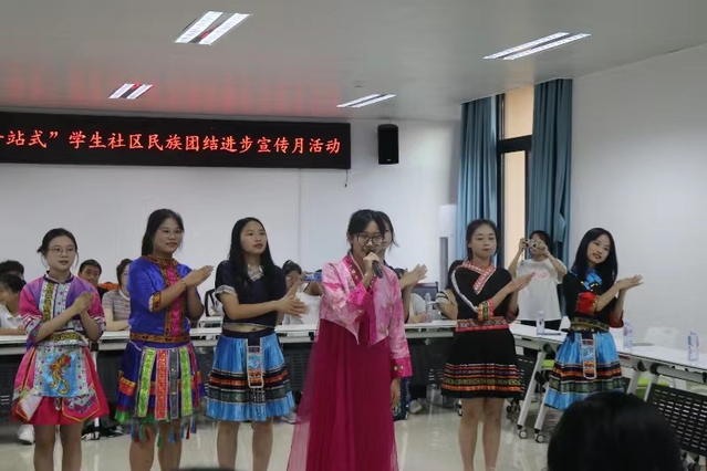 为迎接第十六个民族团结进步宣传月,进一步铸牢中华民族共同体意识,持续深化学校民族团结进步工作,关心关爱家庭经济困难、少数民族学生成长,资源与化工学院于9月27日下午在工科楼A403开展“一站式”学生社区民族团结进步宣传月活动暨关爱家庭经济困难、少数民族学生座谈会。校统战部部长龚榕容、校人事处副处长陈秀琼、校学工处管理科祖力胡马尔.艾合买提,学院党委书记、学院党委副书记、一站式学生社区导师代表、全体辅导员、学生代表参加。