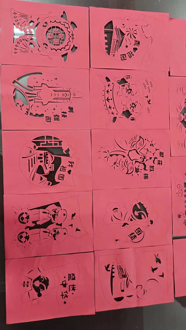 在爱国剪纸活动中,同学们也集思广益,充分发挥想象的同时尽情享受着剪纸的乐趣,用指尖传承爱国情怀。
