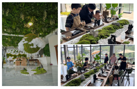 据悉,该团队在获得创业立项后,于今年8月在浙江省安吉县成立苔森艺术文化有限公司。依托在室内设计、景观设计方面的专业优势,将苔藓与美学完美结合,打造出了苔森·苔藓造艺馆,为客户提供原料供应、苔藓微景观文创、景观工程、自然研学教育等服务。目前造艺馆已经试运营,10月底将正式营业。