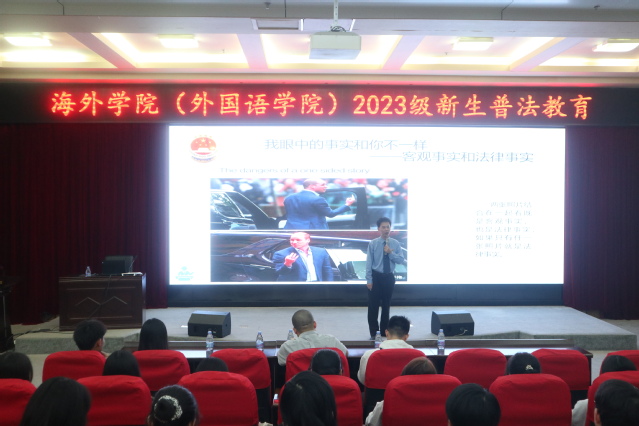 10月9日,海外学院(外国语学院)在图书馆学术报告厅开展普法教育讲座。本次讲座由三明市三元区人民检察院检察官陈春辉主讲,2023级全体新生参加。