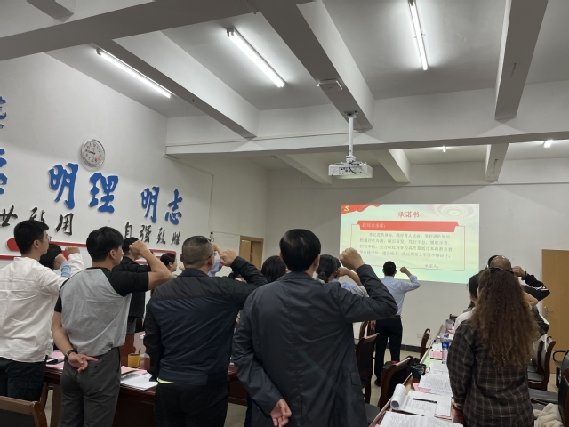 承诺践诺,争当评建先锋。在学生处支部书记的带领下,全体与会党员同志郑重宣誓,将认真学习评估知识,深刻理解评估理念,以高度的责任感和使命感完成本科教育教学审核评估工作,为学校内涵式高质量发展、建设一流应用型高校作出积极贡献。
