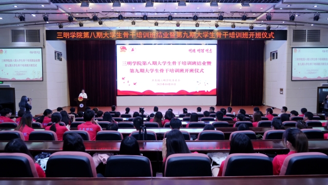 为深入学习贯彻习近平新时代中国特色社会主义思想和党的二十大精神,努力为党培育和输送一批真正的青年政治骨干,10月18日下午,我校在行政附楼报告厅举行青年马克思主义者培养工程第八期大学生骨干培训班结业暨第九期培训班开班仪式。校党委副书记廖景榕、李莉星出席仪式,宣传部、学生处、校团委及各二级学院团委负责人与第八期、第九期大学生骨干培训班学员共同参加活动。