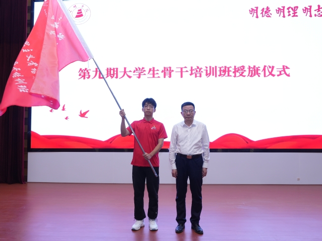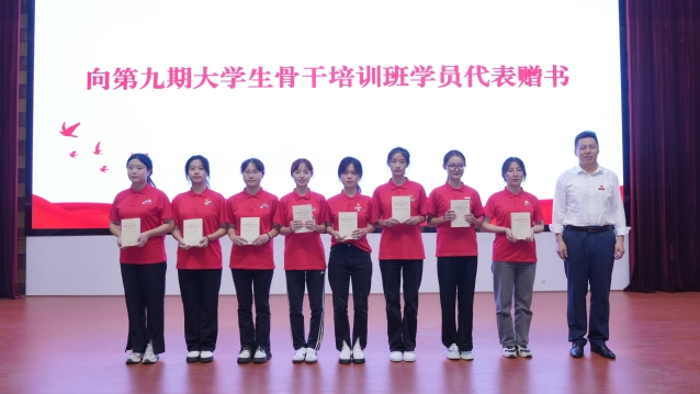 自9月初启动第九期大骨班学员推荐遴选工作以来,全校253名学生提出申请,经过资格审核、笔试和面试,最终确定学员100名。仪式现场,廖景榕向第九期大骨班授旗,李莉星向学员代表赠送《习近平新时代中国特色社会主义思想专题摘编》,进一步推动大骨班深化开展学习贯彻习近平新时代中国特色社会主义思想主题教育,引导青年接过旗帜,传承信念,以争当表率、争做示范、走在前列的高度自觉,为学校发展、强国建设和民族复兴贡献青春力量。