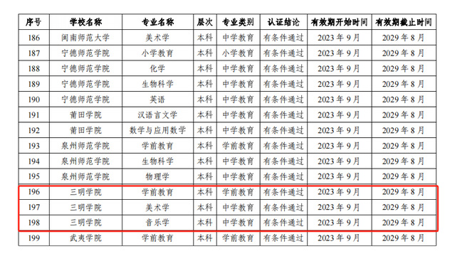 近日,教育部发布了《教育部办公厅关于公布2023年通过普通高等学校师范类专业认证专业名单及中期审核专业名单的通知》,我校音乐学、美术学、学前教育3个专业通过师范类专业第二级认证,认证结论有效期六年,自2023年9月起至2029年8月止。截至目前,我校共有6个专业通过了师范类专业第二级认证。今年6月,英语专业也已完成师范类专业第二级认证现场考查。