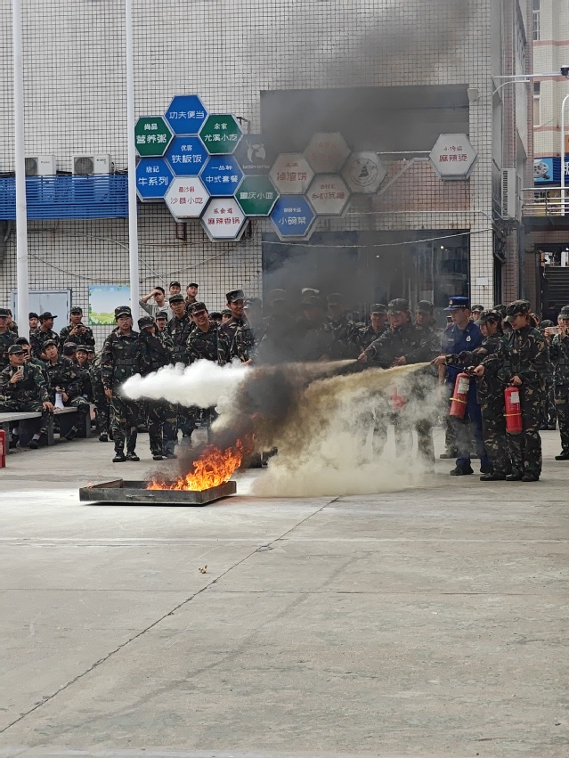 三元消防大队官兵对本次演练情况做了点评,为同学们普及了一些防灾减灾救灾小知识和灭火器的使用方法,组织同学们实操体验使用灭火器灭火的流程。随后,大队官兵对参与演练的同学们开展了救护、包扎和搬运的简短培训,并向同学们展示了日常使用的各种消防设备。