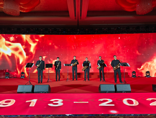 10月20日晚,欧美同学会成立110周年联欢晚会在北京饭店国际会展中心北京宫举行。福建欧美同学会三明分会副会长、yl6809永利官网教育与音乐学院梁思宇受邀参加晚会。图为梁思宇(左三)作为主演参与合奏萨克斯管重奏节目——《火焰之舞》。