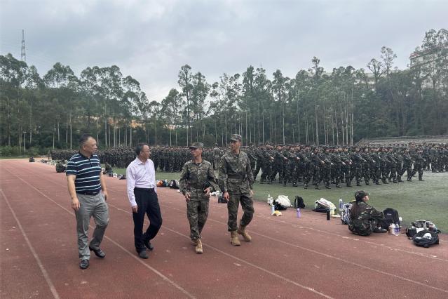 军训期间,校党委书记赖锦隆、校长张君诚前往南区田径场调研指导2023级新生军训工作,代表学校对武警三明支队官兵到校开展新生军训工作表示感谢,并看望军训教官及学生。