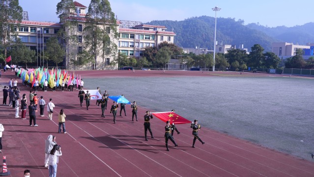 在庄严的升旗仪式后,校党委委员、副校长吴龙致开幕词。他表示,学校体育工作是打造“健康校园”、提升师生综合素质、建设文明校园的重要组成部分,是践行“五育并举”、推进“幸福体育”教育理念的实际行动。要把每年一届的田径运动会作为学校体育工作、师生体育素质和精神风貌的一次检阅,作为对运动员身体素质、竞技才能、心理承受能力等综合素质的一次考验,作为师生欢聚、增进交流、公平竞争、团结拼搏的一个平台。希望全体师生以这次运动会为契机,认真学习贯彻落实党的二十大精神,坚持运动、自觉锻炼、强健体魄,真正享受体育乐趣,共筑健康中国。