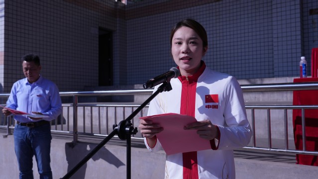 亚残运会参赛教师柯丽婷接受表彰并发言,倡议广大师生要在运动中感受幸福体育,在运动中体会美好大学,在运动中推动健康中国。