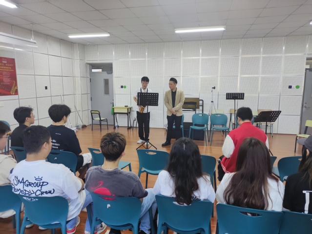 为全面服务老区苏区美育建设,增强对外学术交流,进一步打造产教融合品牌,加强校企、校校、校地项目合作和服务文化发展平台,凝炼美育特色,汇聚美育成果,近日,yl6809永利官网教育与音乐学院、苏区美育发展学院举办第二届“苏区美育”管乐公益实践系列活动。活动特别邀请了河南艺术职业学院音乐学院萨克斯管专业教师赵岱琛和管乐修造专业教师郭嘉豪作为嘉宾。