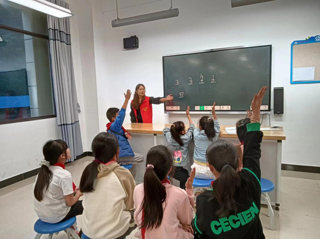 绕口令,多音字、猜字谜……学员们找准专业特长和教学所需的结合点,认真备课研讨、撰写教案,创新开展各类特色教学,帮助小朋友们拓宽视野、启智增慧。寓教于乐的教学方式让孩子们乐于学、敢于思,培养孩子们克服困难的毅力、敢于挑战自我的勇气和坚持不懈的品质。活动现场互动频频,学习氛围浓烈。