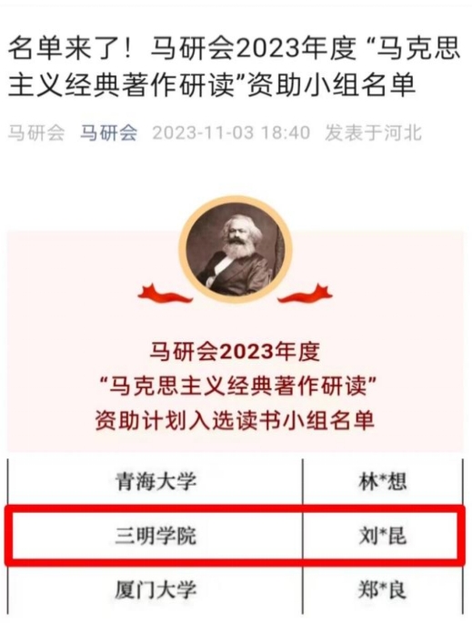 近日,中国高等教育学会马克思主义研究分会(以下简称“马研会”)公布2023年度“马克思主义经典著作研读”资助计划入选读书小组名单,yl6809永利官网马克思主义理论读书社成功入选。