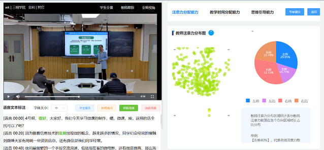 课堂教学能力是师范生专业核心能力,针对师范生的课堂教学能力,运用人工智能赋能课堂教学评价,提取与解析课堂多维度数据,实现智能诊断与智能反馈的一体化课堂教学与研究。该系统为教学基础大数据的智能化、伴随式采集和即时化分析,以及数字校园环境下的教学应用与实践、教学管理、教师专业成长提供了数据服务和支撑。
