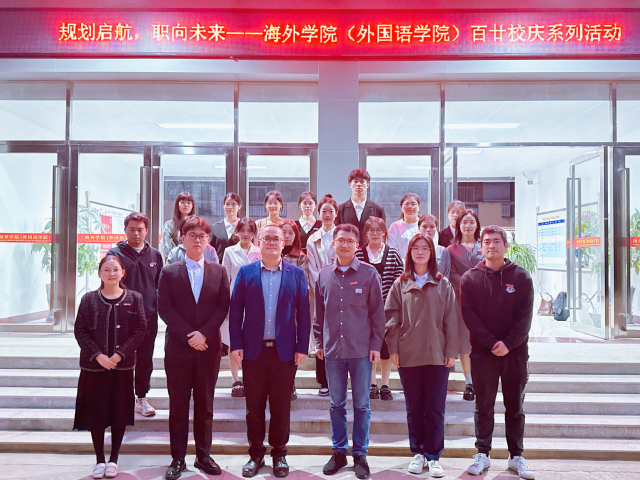 11月15日,海外学院(外国语学院)在工科楼B301举办了“规划启航,职向未来”百廿校庆活动暨第五届大学生职业规划大赛决赛。经激烈角逐,共有12名选手进入决赛。本次比赛邀请优秀校友、往届职业规划大赛获奖优秀代表等回校担任评委,海外学院(外国语学院)党委林云副书记、辅导员参加并担任评委,约60名同学观看本次比赛。