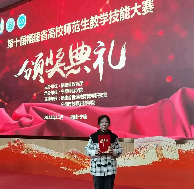 11月24日至26日,由福建省教育厅主办的第十届福建省高校师范生教学技能大赛决赛在宁德师范学院举行。海外学院(外国语学院)英语(师范)专业谢媛婷、沈迦南同学参加初中英语学科比赛,分别获得二等奖和优秀奖,其中谢媛婷同学排名全省第四,是海外学院(外国语学院)参赛以来的最佳成绩。