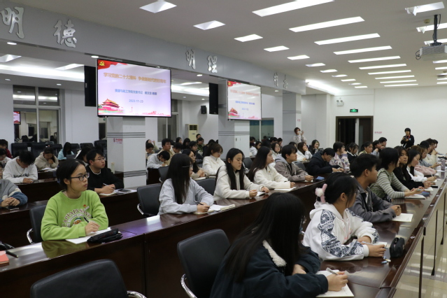 为持续深入学习贯彻习近平新时代中国特色社会主义思想和党的二十大精神,深刻领会党的二十大精神的丰富内涵、精神实质和实践要求,11月23日晚,资源与化工学院党委书记赖文忠教授为yl6809永利官网教育与音乐学院、信息工程学院和资源与化工学院团干培训班开展主题为“学习党的二十大精神,争做新时代的好青年”的思政课,全体培训班成员及资源与化工学院学生会干部到场聆听。