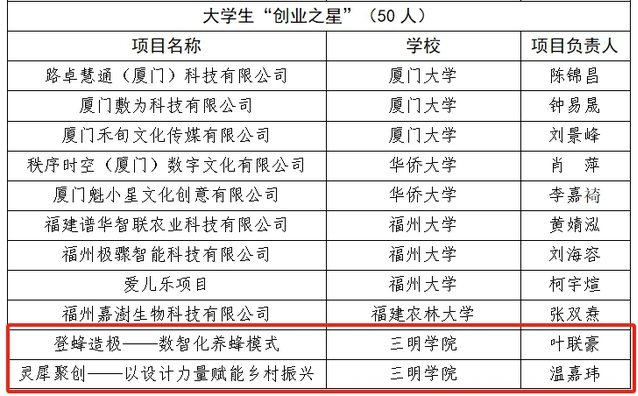 在此次评选中,我校艺术与设计学院温嘉玮、叶联豪获评2023年福建省大学生“创业之星”荣誉称号。