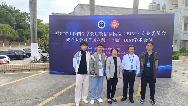 近日,福建省工程图学学会建筑信息模型(BIM)专业委员会成立大会暨八闽 三融 BIM 学术会议在厦门召开。建筑工程学院副院长崔秀琴教授、工程造价系主任钟海博士、工程造价系副主任徐欣博士、工程造价系教师乐旭东、实验室高级实验员连跃宗一行五人出席本次会议,崔秀琴教授当选福建省工程图学学会建筑信息模型(BIM)专业委员会常务委员,乐旭东老师当选副秘书长。