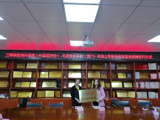 双方就校企合作进行深入洽谈,举行了商务英语专业教学实践基地授牌签约仪式。中语智汇科技(厦门)有限公司为一家智能互联网教育企业,依托云计算、人工智能、虚拟现实、大数据等新一代信息技术,建设多元、智能、创新、共享的智慧教育云平台,其研发的综合商务英语实践教学平台弥补了海外学院(外国语学院)商务英语专业综合实践体系的不足,优化了校内实践资源。近三年,该公司免费为海外学院(外国语学院)商务英语专业学生认知实习、专业实习和毕业实习提供了丰富的线上资源,并组织学生参加各种学科竞赛,提供实习机会。双方于2022年共建了教育部产学合作协同育人实践基地项目,该项目融入课内课外、校内校外、第二课堂、综合实训等一体化实践教学,推进了信息化实践教学平台的建设,提升了学生的实践应用能力。
