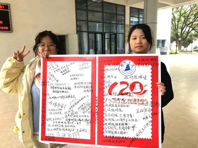 活动现场热闹非凡、井然有序。同学们在行政楼停车场前的涂鸦板留下了自己对学校百廿校庆的深深祝福,在图书馆前通过问答小游戏回忆校史。在环绕校园进行集章打卡的路途中,同学们用手机或相机拍下了心中最美的明院风景,发现百廿明院如今呈现出的新面貌、新风景。