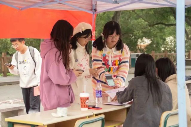 活动设置行政楼停车场、艺术楼、图书馆、南区篮球场四个打卡点,同学们领取集章小册,到每个地点打卡集章,留下专属于百廿校庆的印章记忆。