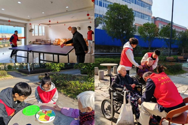 此外,志愿者们与老人们打兵乓球、下棋、晒太阳、听诉老人讲故事......全身心投入到此次活动当中,向老人们传递爱与温暖。